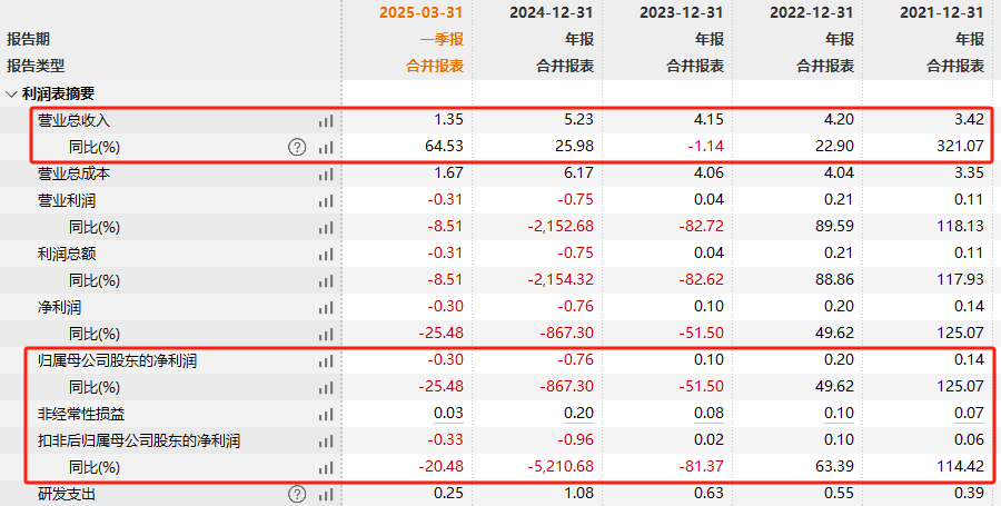 业绩方面,康希通信2024年实现营业收入5.23亿元,同比增长25.98%;归属于上市公司股东的净利润为-7612.74万元,同比下降867.3%。2025年一季度,康希通信实现营业收入1.35亿元,同比增长64.53%;归属于上市公司股东的净利润为-3020.37万元,较上年同期亏损扩大。